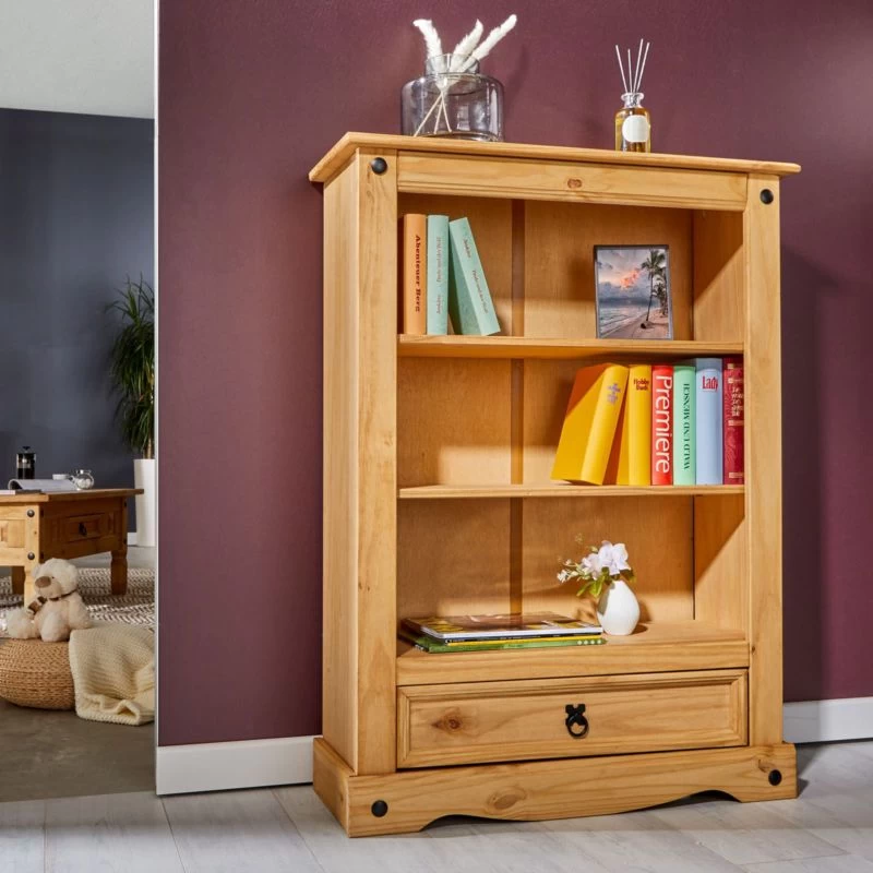 - Contenu de la livraison : 1 x SALSA Bibliothèque en pin, 3 étagères et 1 tiroir