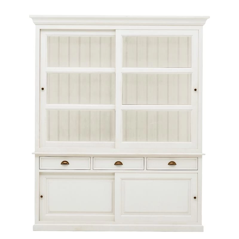 - 2 portes coulissantes, chacune avec 1 tablette en bois