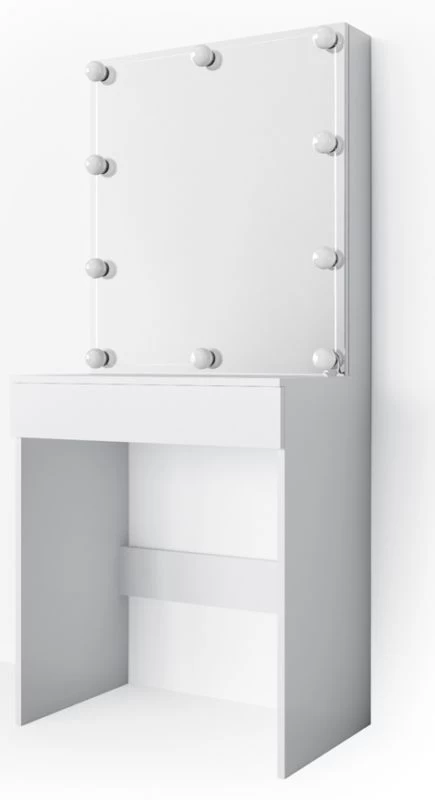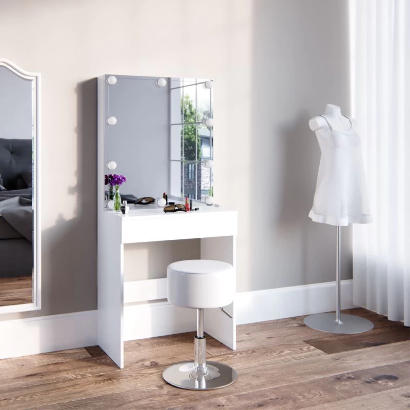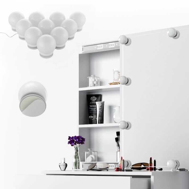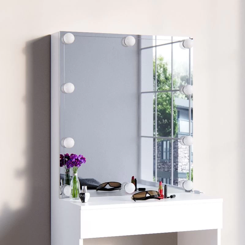 - Contenu de la livraison : • 1x table de maquillage avec armoire de toilette + 10 boules lumineuses à LED Remarque : La décoration n’est pas comprise dans la livraison.