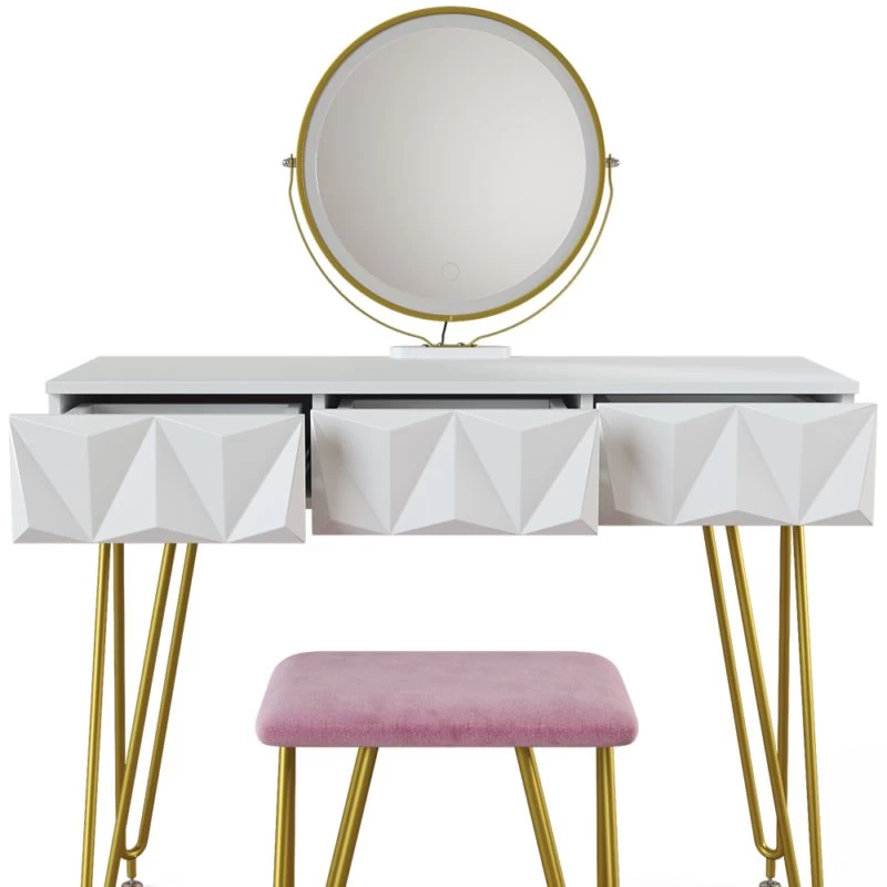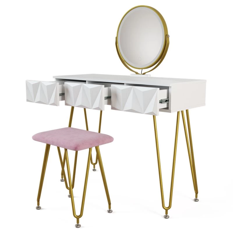 - Contenu de la livraison : • 1x coiffeuse• 1x tabouret design• 1x miroir LEDDécoration non incluse.